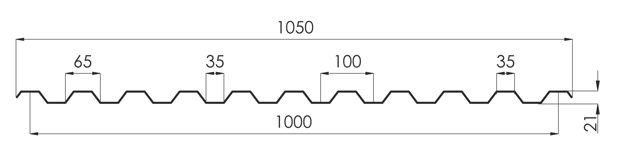 - высота волны 21 мм,