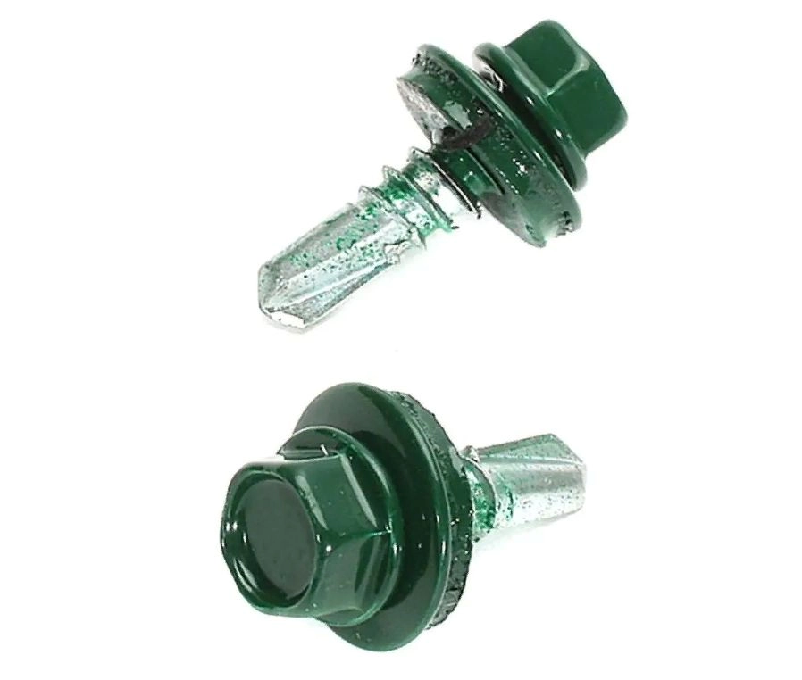 Саморез кровельный 5,5х19мм RAL6005 зелёный мох применяется для крепления металлочерепицы и профнастила к деревянным и металлическим кровельным конструкциям.
