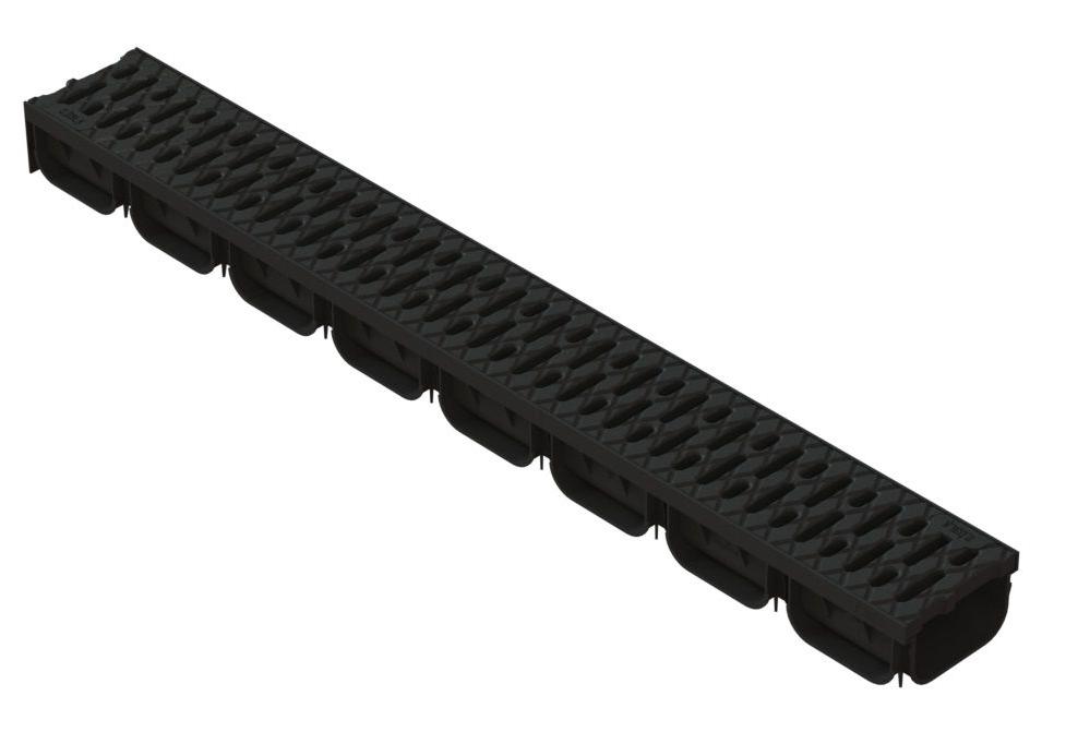 Лоток водоотводный Polymax S'park 2 DN100, 1000х125х70 мм, решетка пластиковая, 08818 имеет гидравлическое сечение 100 мм и используется для отвода дождевой и талой воды с тротуаров, дорожек, фундамента.
